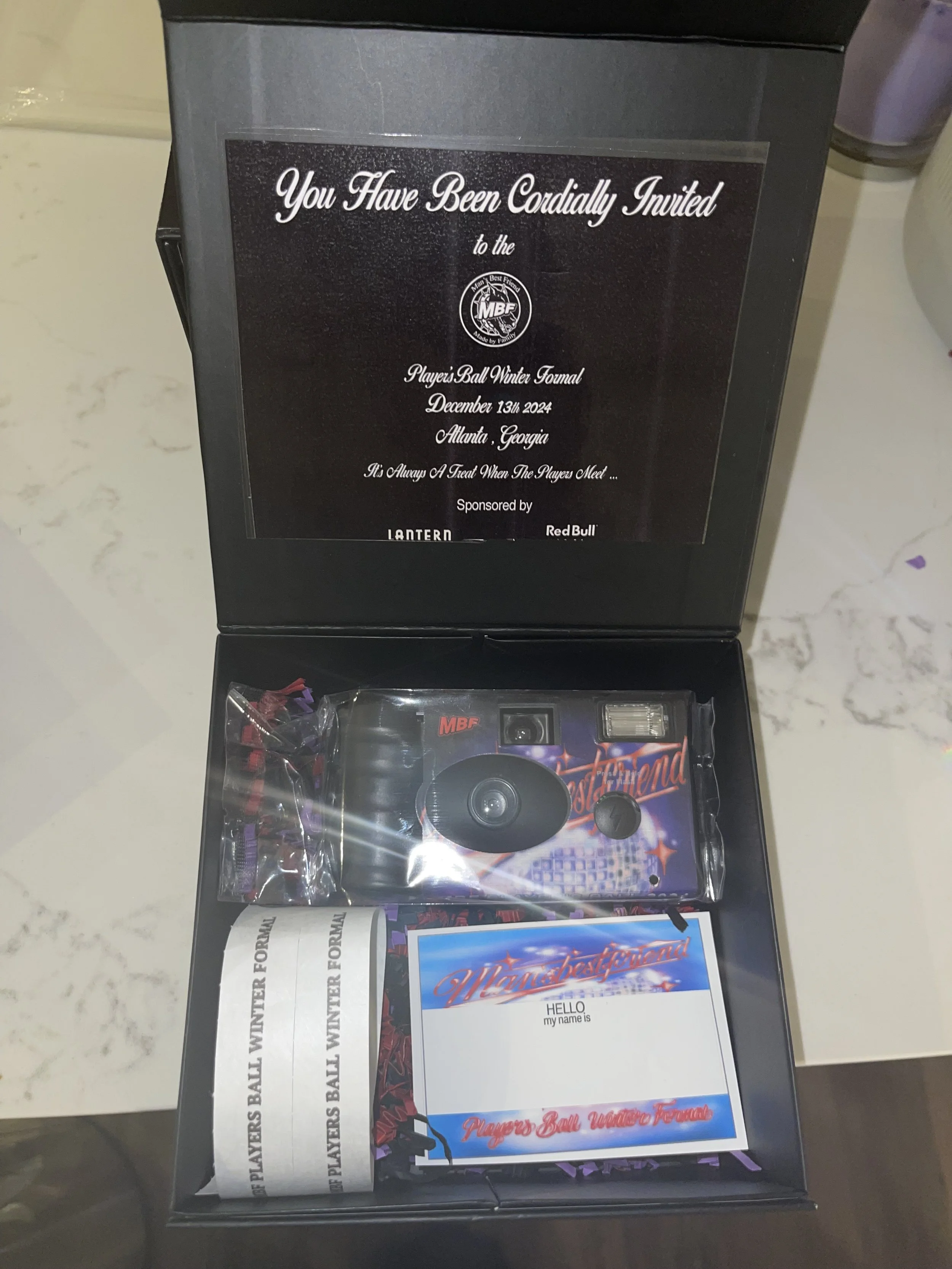 The MBF Winter Formal was a Friends and Family holiday party that boasted a staggering 250+ RSVP waitlist. Sponsored by Lantern Beverage, a natural wine company, and Red Bull energy drink, the event was electrified with energy and excitement. The invitations themselves were a unique touch—MBF-branded disposable cameras. How cool is that? Guests also received memorabilia boxes, nametags, and stickers as part of the experience.